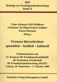 Grenzen überschreiten: sprachlich – fachlich – kulturell / Claus Altmayer; Grit Mehlhorn; Christiane Neveling; Norbert Schlüter; Karen Schramm (Hrsg.)Baltmannsweiler : Schneider Hohengehren, 2010 Karen Schramm(= Beiträge zur Fremdsprachenforschung ; 11) Dokumentation zum 23. Kongress für Fremdsprachendidaktik der Deutschen Gesellschaft für Fremdsprachenforschung (DGFF) Leipzig, 30. September – 3. Oktober 2009 ISBN: 9783834006981Inhaltsverzeichnis (DNB) Verfügbarkeit Germanistik Fachbereichsbibliothek Germanistik, Nederlandistik und Skandinavistik: D V c 148 D V c148 Bibliotheksverbundbuchhandel.deWorldcat
